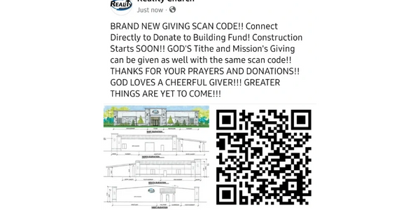 For those times you need the convenience of giving online, please do so through our Kindrid Realty AG Church link or QR Code: www.kindridgiving.com/app/giving/realityagchurch